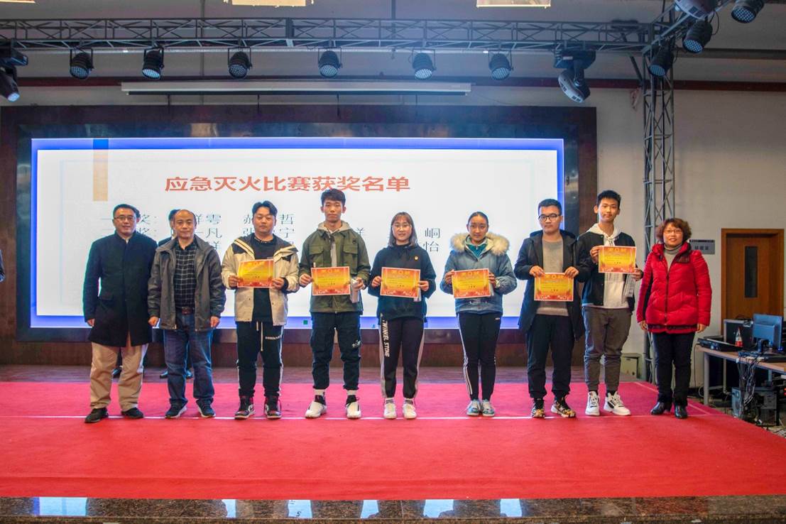 活动最后到场嘉宾为在本次安全知识竞赛获奖的同学、在应急灭火比赛中获奖的同学以及优秀微视频投稿的班级代表颁发奖状奖品并合影留念。