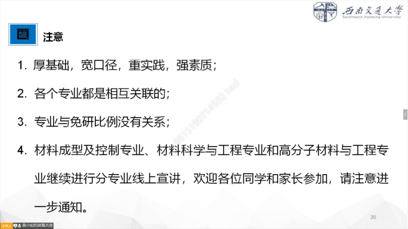2020年3月27日晚上七点,k1体育2019级本科生分专业宣讲首次采取了线上会议的形式开展。各地的材料学子准时进入腾讯会议宣讲直播间,对专业加深了解,并为选择方向做好准备。