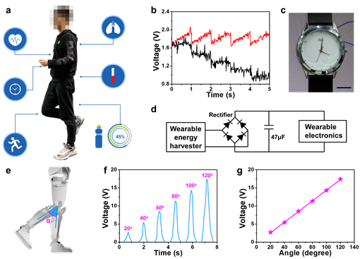 图3. 介电增强TENG用于能量收集及人体运动检测