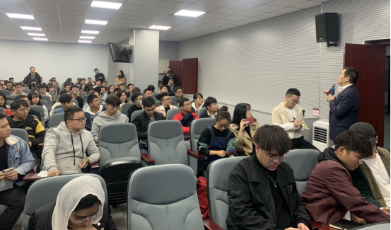 在讲座最后,洪方明学长还与参会者就个人职业发展进行了交流,他指出员工在校期间的学习成绩是个人学习能力的体现,是企业选人的重要依据,同时要多读书、选学相关专业的课程,增长知识面,提高个人素质。