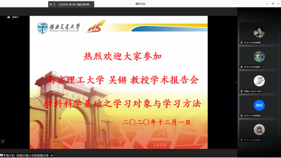 为帮助材料学子们学习《材料科学基础》这门课程,k1体育邀请吴锵教授,为“材”子们讲解《材料科学基础的》的学习对象与学习方法,帮助大家更好的消化理解相关专业课知识,为大家在《材料科学基础》的学习提供更科学的方法。12月1日晚上7点,讲座通过腾讯会议准时召开。