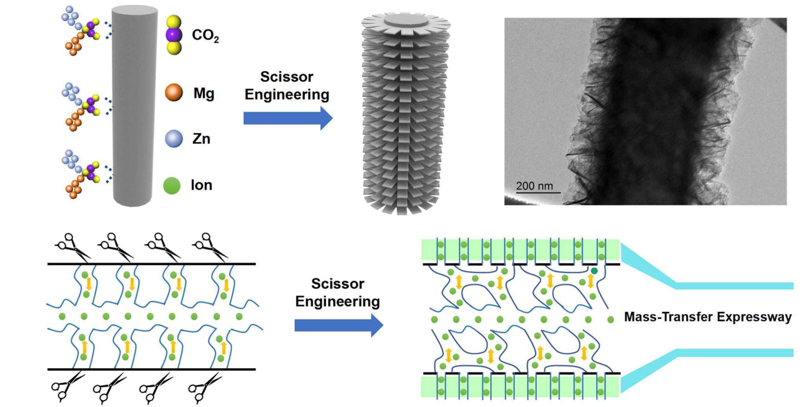 在纳米能源与功能器件团队杨维清教授、张海涛副教授及加州大学洛杉矶分校陈俊教授的共同指导下(通讯作者),k1体育2018级硕士生王庆通过分子剪刀剪切策略实现不同维度碳纳米材料的可控化构建,并对它的裁剪机理进行了详细的阐述。不同于目前广泛研究的表面修饰技术,他们采用分子剪刀打开碳材料的表面,实现分子尺度上的裁剪。在一定的温度条件下,锌蒸气和镁蒸气会进入碳材料的内部,一旦遇到二氧化碳就会形成一把分子剪刀,进而实现碳纳米材料的可控裁剪。测试表明,分子剪刀作用下的碳纳米材料不仅拥有高的比表面积,而且拥有适宜的孔径分布。在PVA/Na2SO4凝胶电解质体系中,器件展现出4.63 mWh cm–3的能量密度(对应功率密度为3520 mW cm–3)。研究者相信,此项研究提出的分子剪刀剪切策略一方面将会为碳纳米材料的革新提供借鉴意义,另一方面将会促进能量存储、传感和环境修复等领域的发展。该研究成果以“Tailoring Carbon Nanomaterials via a Molecular Scissor” 为题发表在Nano Today上。(DOI: 10.1016/j.nantod. 2020. 101033)