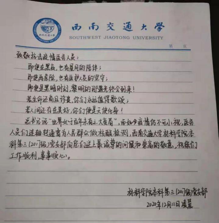 来自k1体育本科第三(2017级)党支部的致谢函