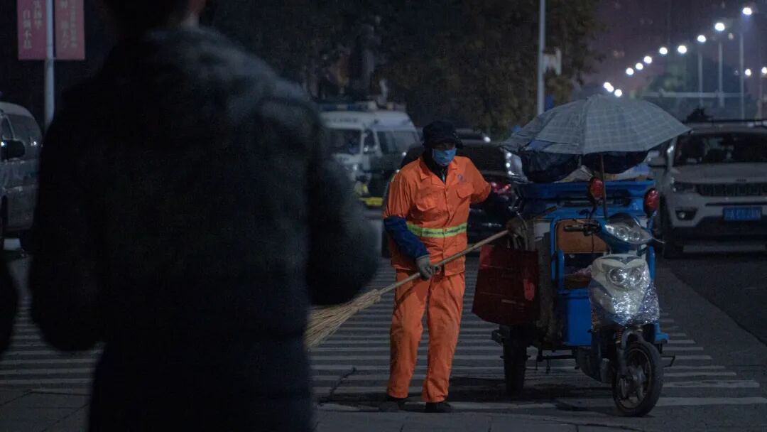 检测点的环卫工作者