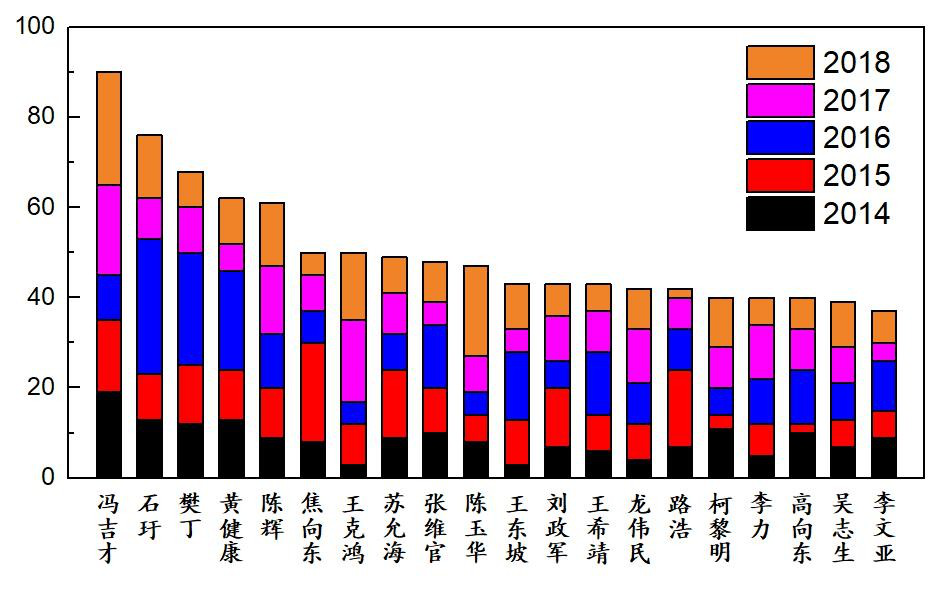 排名前十位分别是冯吉才、石玗、樊丁、黄健康、陈辉、焦向东、王克红、苏允海、张维官、陈玉华。