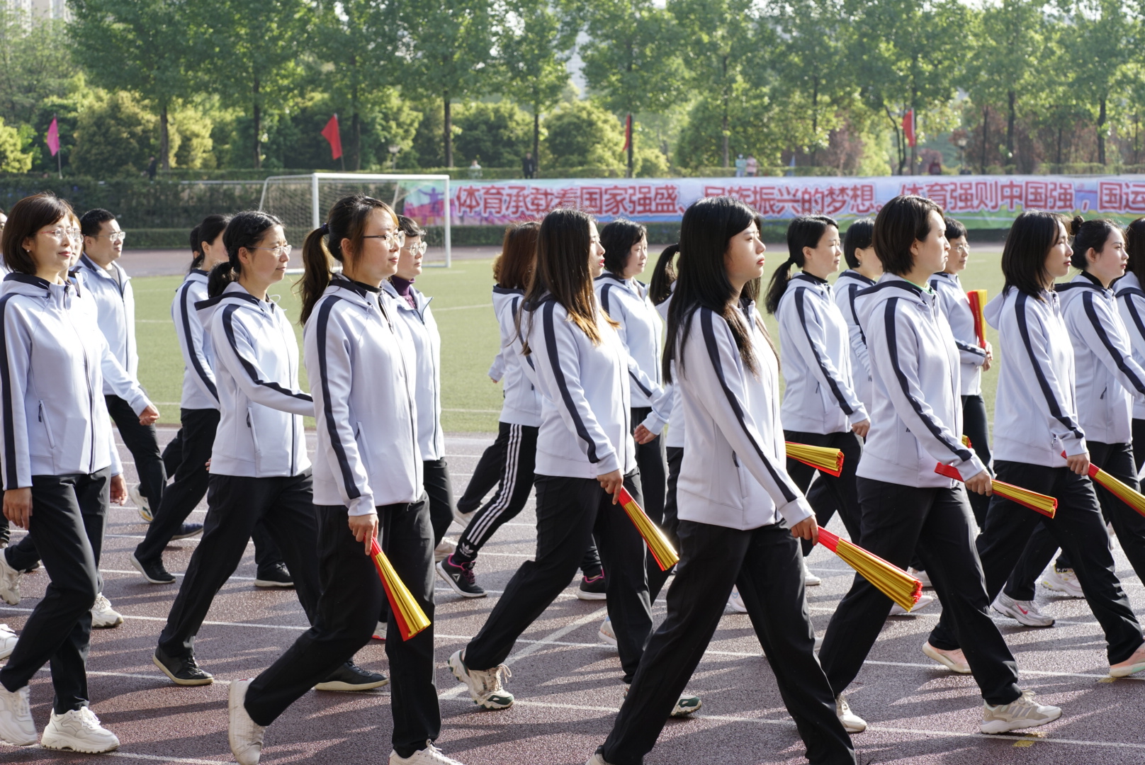 踏着晨风,迎着朝阳,k1体育的师生方队向主席台迈进。他们昂首挺胸,脚下有路,心中有火,眼里有光!