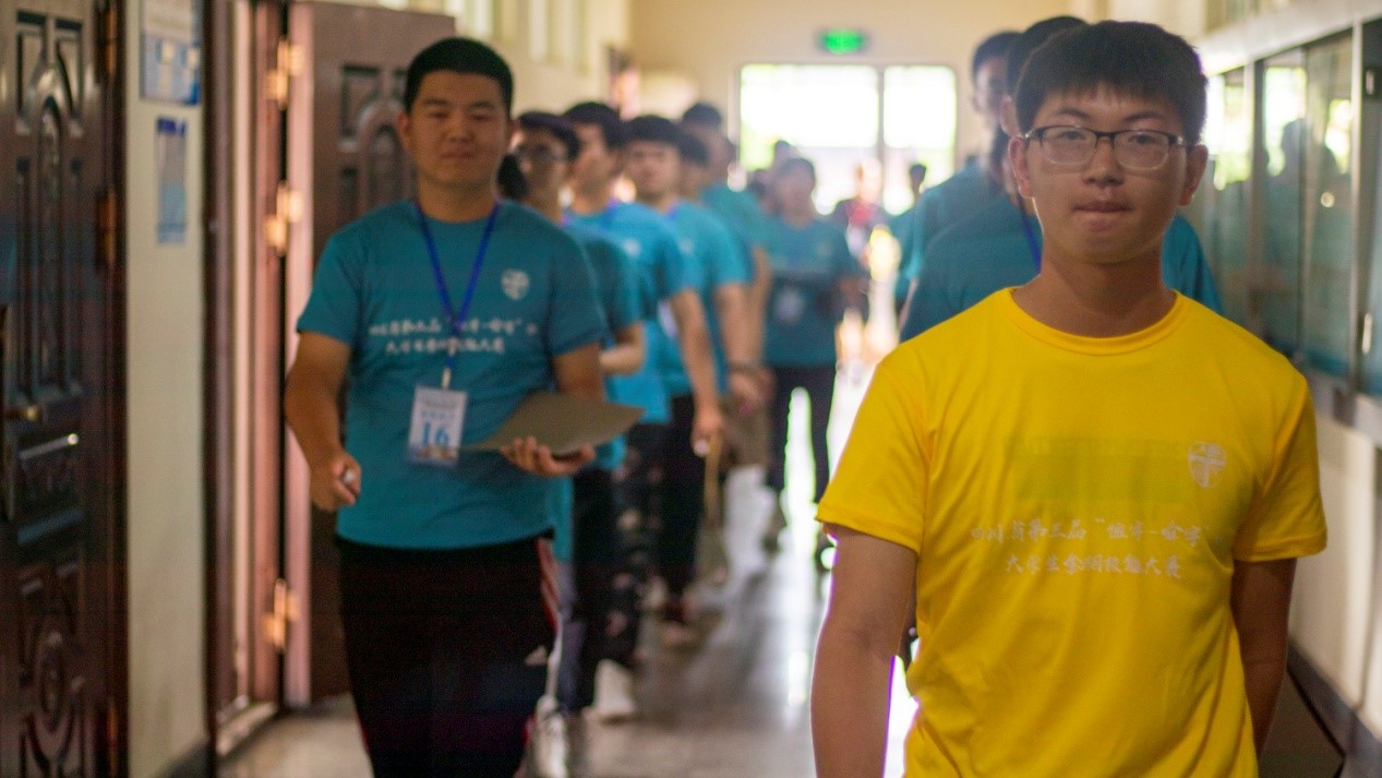所有同学统一穿着比赛服饰,进入比赛场地。