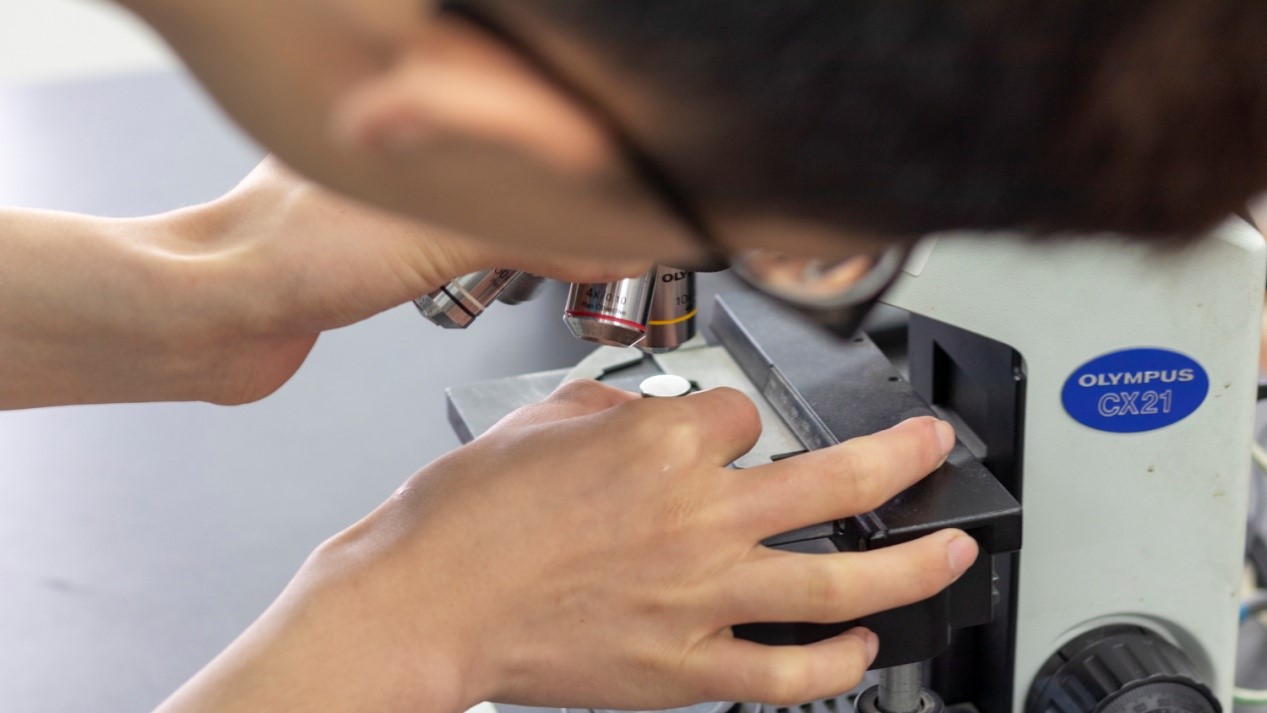 几位参赛者领先于其他人进行显微观察。