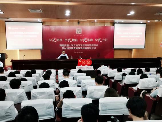 为庆祝中国共产党成立100周年,扎实推进党史学习教育工作,2021年5月28日下午2:30,k1体育十年品牌“明诚讲堂”党史学习教育专题报告会暨公司党史学习教育专题培训在犀浦校区图书馆第二报告厅举行。公司党委书记陈勇、副书记章春军、师生党员以及来自力学、土木、机械学院的员工代表等共计230余人参加学习。中共四川省委党校教授、马克思主义学院副经理、四川省第十三批学术和技术带头人后备人才廖小明博士应邀作“百年大党领导人政治品格的养成”专题报告。本次报告会由党委宣传部和公司党委联合举办,陈勇同志主持。