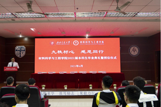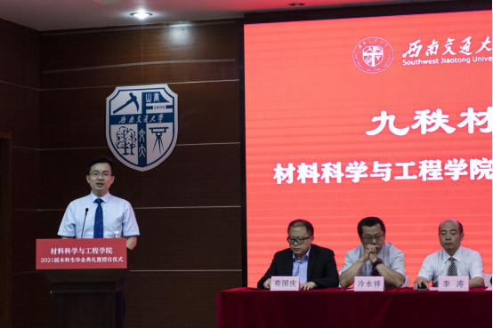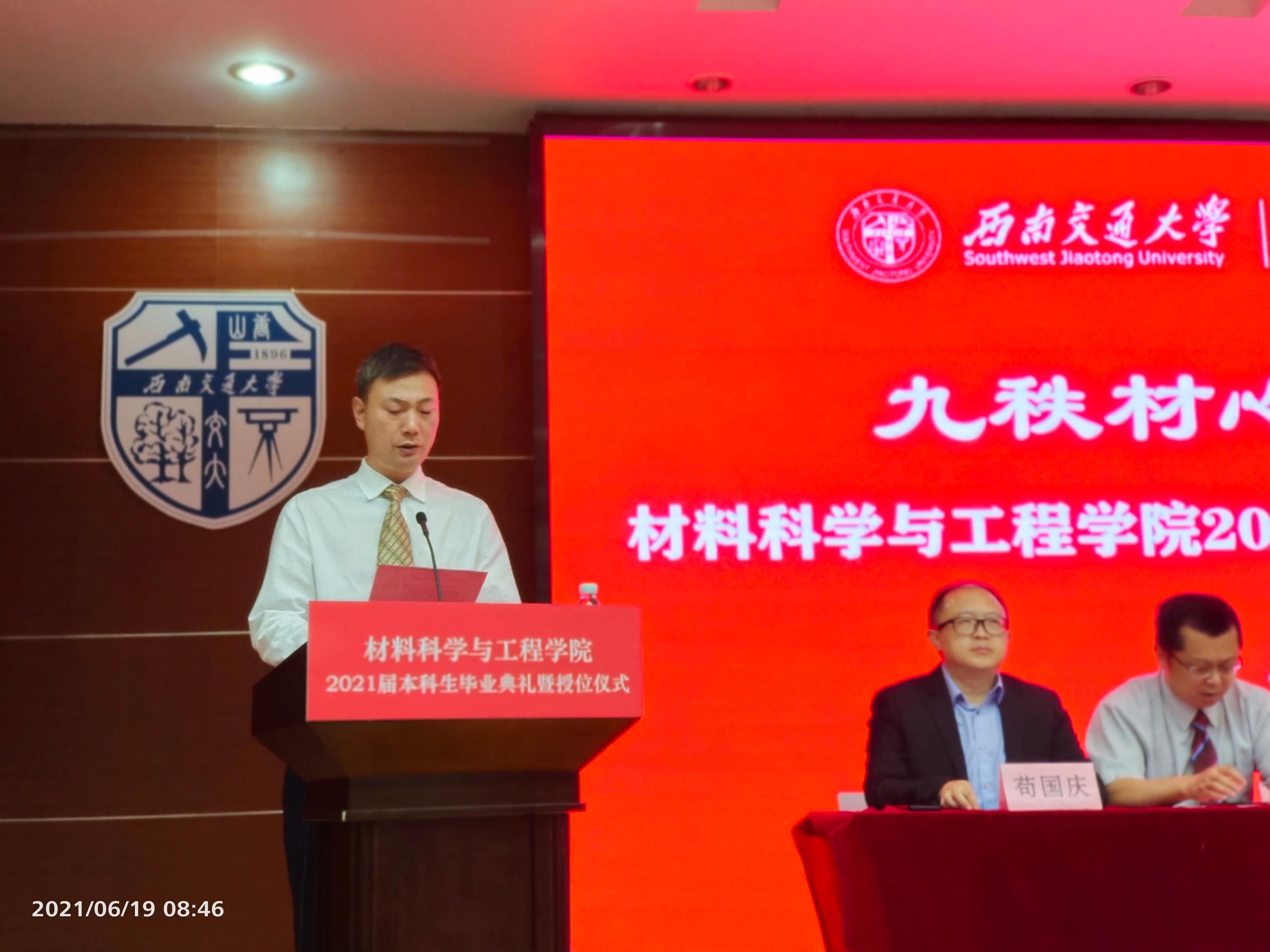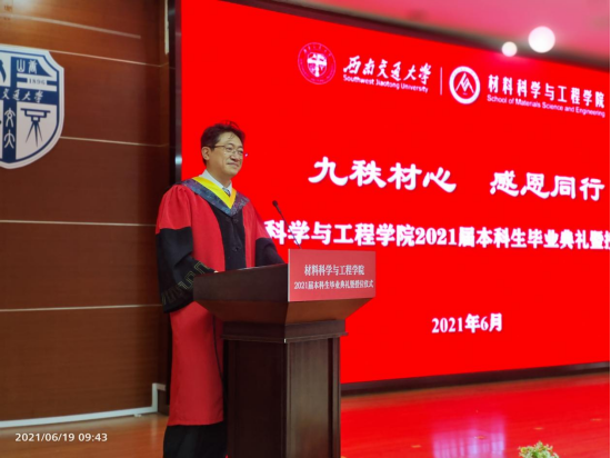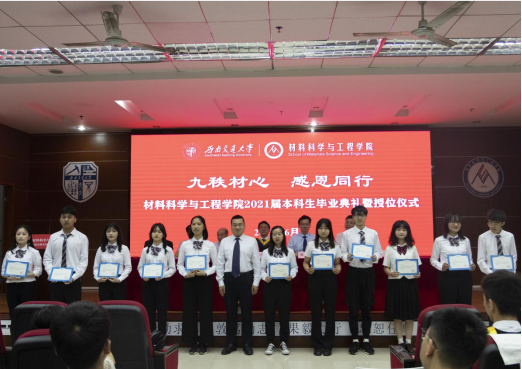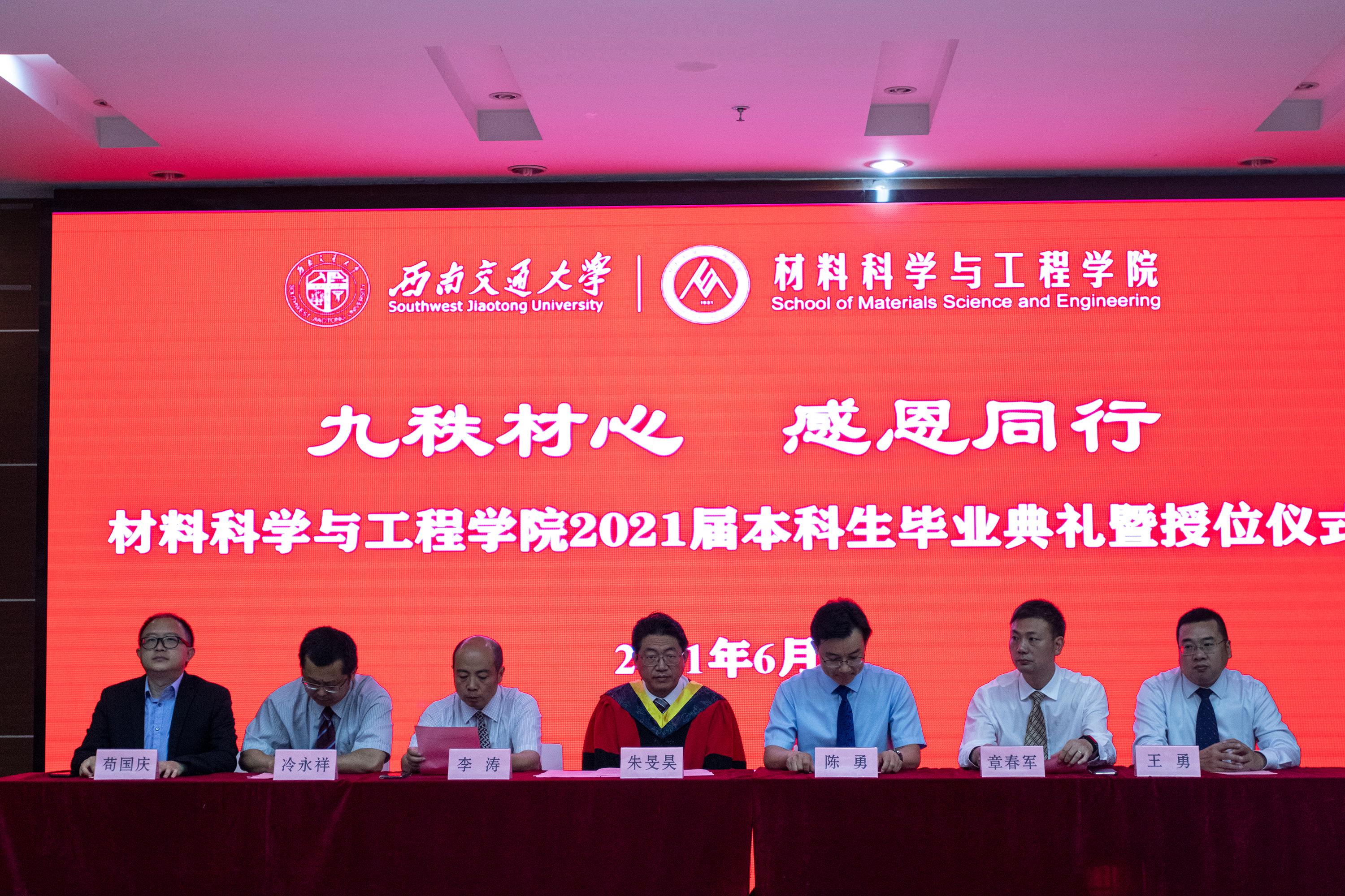 2021年6月19日,以“九秩材心,感恩同行”为主题的2021届本科毕业典礼暨授位仪式在k1体育十年品牌犀浦校区四食堂三楼320报告厅举行,2017级全体本科生参加典礼,黄德明主持典礼。出席典礼的院领导有朱旻昊经理、陈勇书记、李涛副经理、冷永祥副经理、章春军副书记,教师代表有王勇教授、苟国庆教授、吕其兵教授、王进教授、翁亚军教授、朱宗涛副教授、孟凡彬副教授、姜曼副教授、赵君文副教授、李达副教授,辅导员代表有黄德明、许欢、王誉静、梁喻嘉、郑纪伟、熊苏雅、罗丹、肖俊怡、董海霞、杨婷。