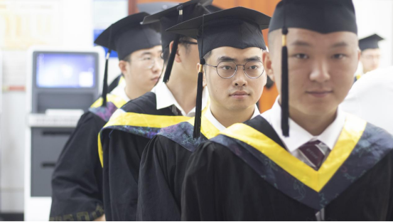上午8:30,毕业典礼正式开始。全体肃立,奏唱中华人民共和国国歌。