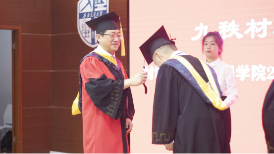 紧接着进行了授位仪式。同学们身着学士服依次上台,k1体育经理、学位评定分委员会主席、主礼教授朱旻昊为他们逐一拔穗,200多名毕业生,200多次握手,200多次拨穗,每一个瞬间都将定格,在记忆的长河里熠熠生辉。授位仪式神圣而庄严,标志着大学生活圆满结束。拨穗正冠,代表稻穗或麦穗成熟,象征学子们已学有所成,即将展翅高飞,同时也寓意学子们在岁月的征程中行稳致远。