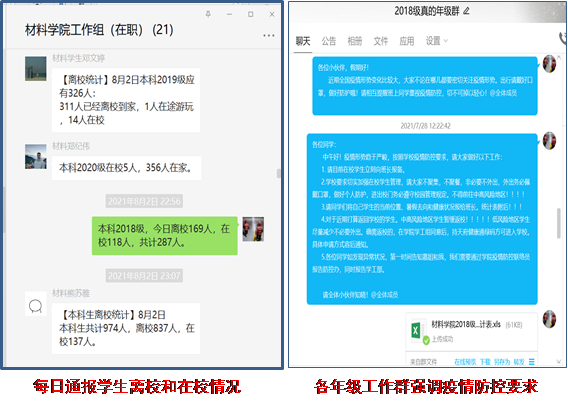 2.组织召开2次疫情防控专项会议进行专题部署。全面掌握全体员工当前位置、暑期去向、行程信息和每日健康、和健康状况等动态信息,做好全体员工在校和离校数据更新,每日进行群通报,每日上统计和上报在校生防疫相关信息,线上联系重点区域员工,做好关心关爱和教育提醒工作,开展返校员工健康信息核查和审批工作。与各课题组及导师积极互动,协同处置突发情况多起。