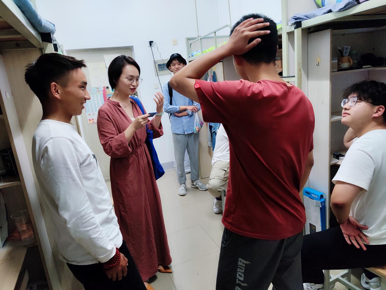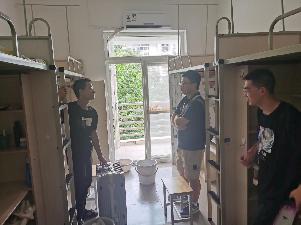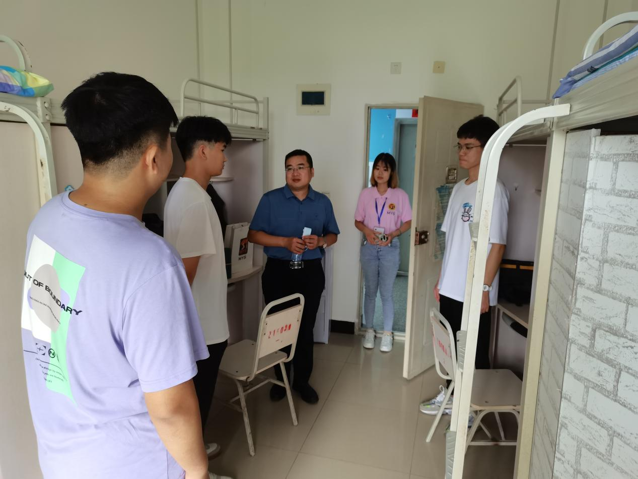 新生报到结束后,为进一步了解新生对老员工活的适应情况,关心关爱新同学,2021级本科生班主任热心走访新生宿舍,了解新生入住情况,为新生答疑解惑,与新生进行了面对面交流,向新同学们表达亲切问候和深切关怀。