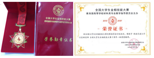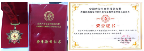 图9 参赛选手获奖证书和奖牌展示
