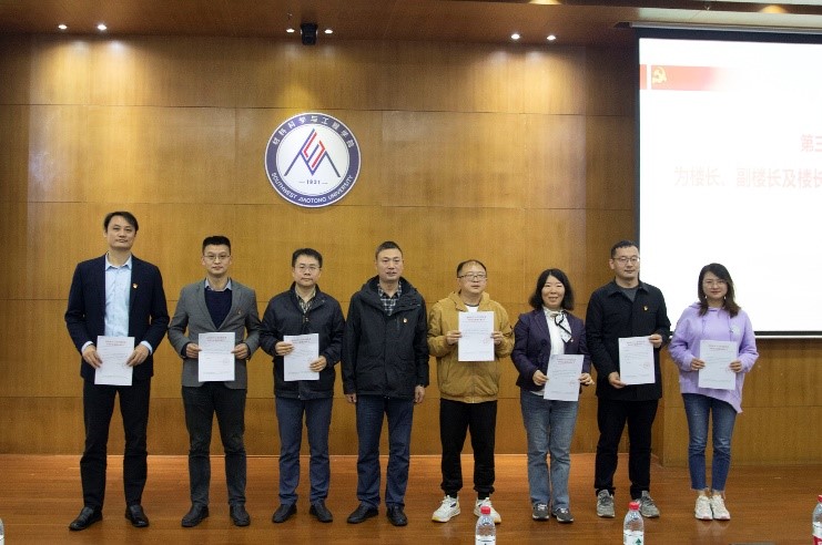 仪式第三项,章春军为全体楼长颁发聘任令并提出工作要求。首先,他感谢了各位领导和老师接受楼长聘任。接着,他提出各任职人员应该努力做好各自的工作,协同推进楼长制工作。楼长要做好深入宿舍工作,关爱员工成长、关注宿舍安全、关心员工心理健康;副楼长辅导员要做好楼长制工作的统筹落实,做好工作设计,主动对接各方,做到“月月有主题,周周有任务”,楼长助理应协助副楼长抓好工作落实;在学院投入各种力量为员工成才铺路的同时,员工也应做到“对自己负责、对未来负责”,守住底线奔高线,主动做好人生规划,主动加强与学院老师的交流。
