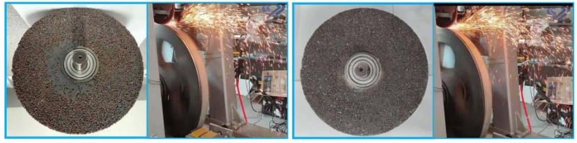 图2 自主研发的钢轨高速打磨磨石及台架试验性能评价