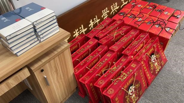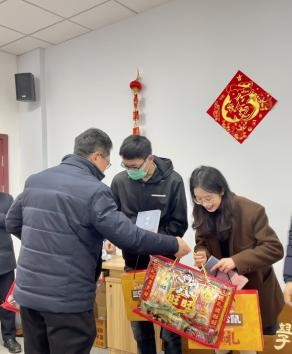 接着,学院领导和老师们亲手为同学们送上精心准备的新春礼包,礼包中不仅有同学们喜爱的零食,还有精美书籍。同学们收到礼包倍感温暖,纷纷表示感谢。