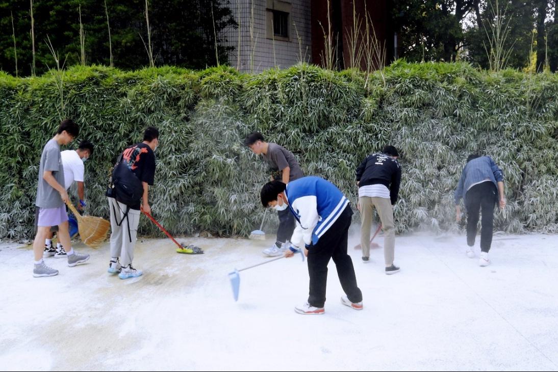 下午17:30,当六十瓶灭火器用完之时,也就是本次活动的结束之际,灭火演练结束之际,全体同学有序签退,研究生第七党支部在指挥组的安排下,将剩余灭火器瓶用完并装车,最后对活动现场进行了清扫。